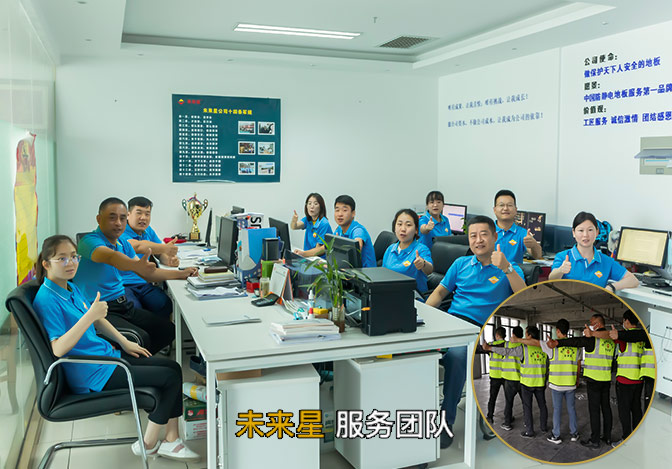 未來星PVC防靜電地板廠家日產(chǎn)量1萬平,護航萬家匯寫字樓如期交工